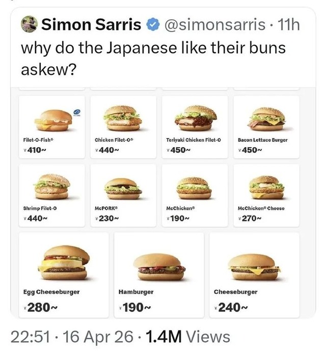海外「何で日本人はハンバーガーの見本でバンズを斜めにするの…?」